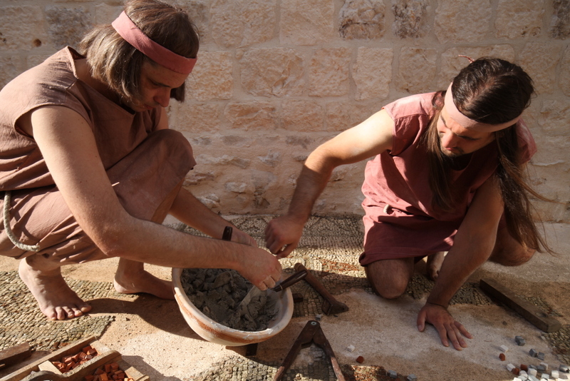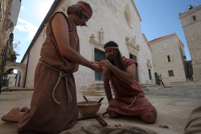 Majstori izrade mozaika: Tonči Klepo i Mario Derado.