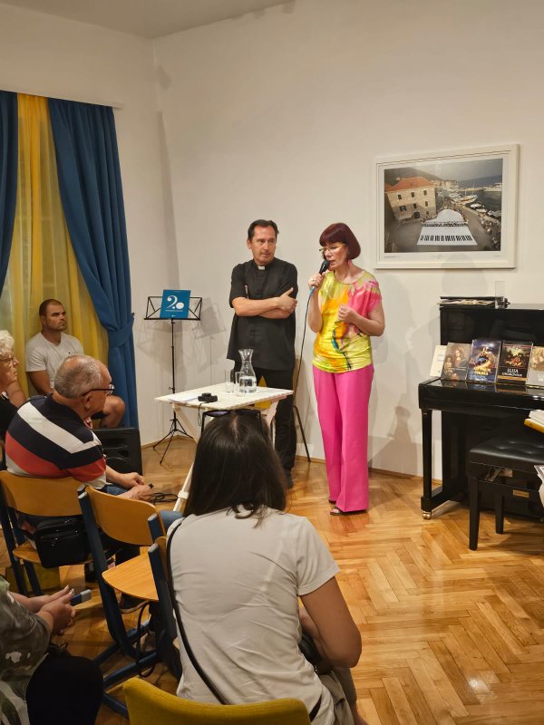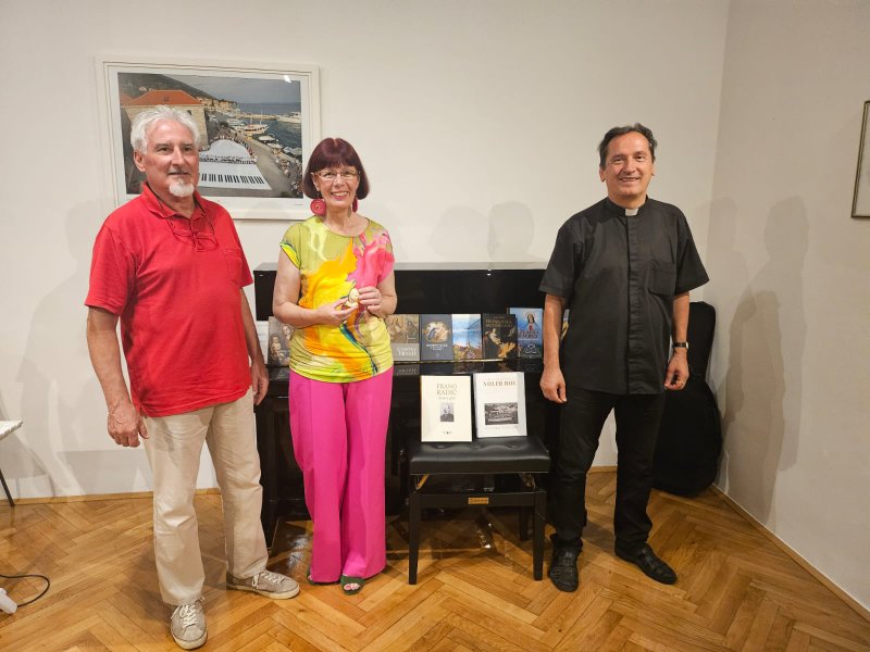 Jadranka Nejašmić darovala je don Josipu knjigu Jakova Karmelića: „Volim Bol – bolske striške“ i zbornik radova o bolskom velikanu duha Franu Radiću.