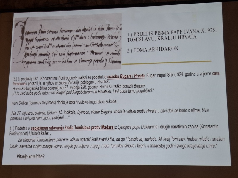 o povijesnim dokazima postojanja Tomislava i uspostavi kraljevstva, o njegovoj vojnoj moći i pobjedi koje su Hrvatskoj osigurale međunarodni ugled.
