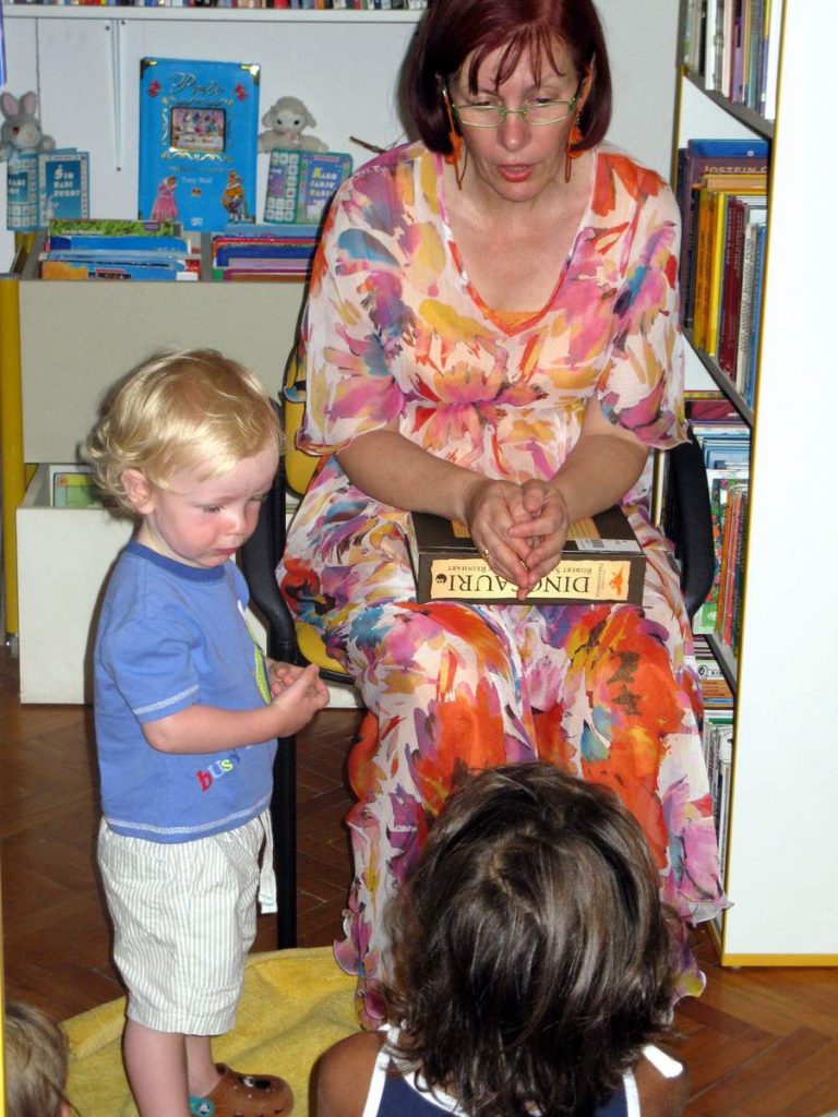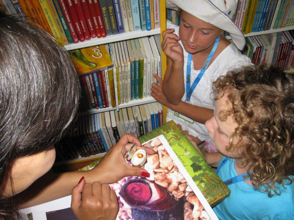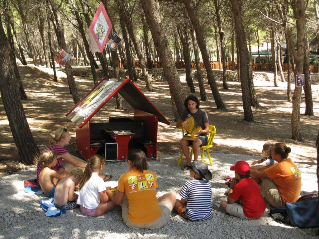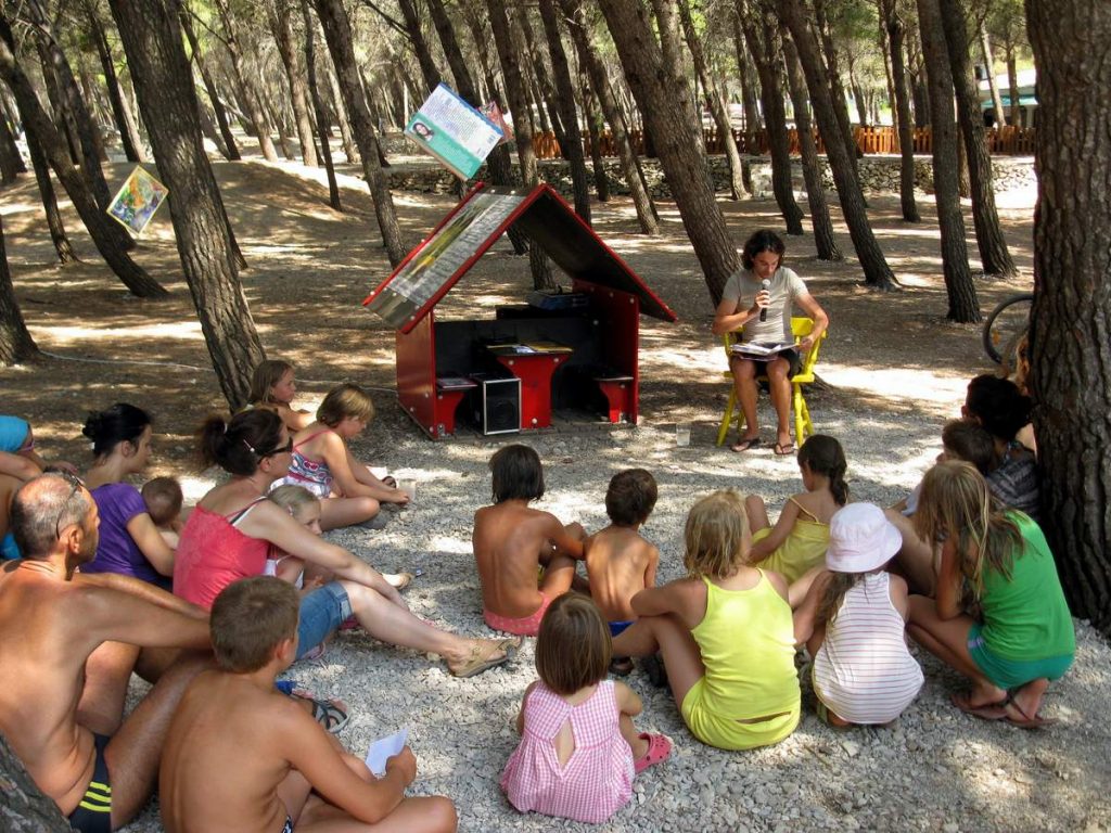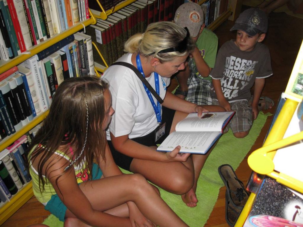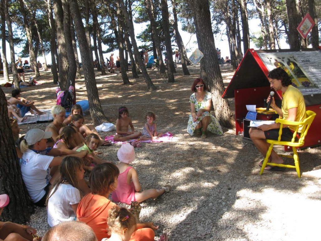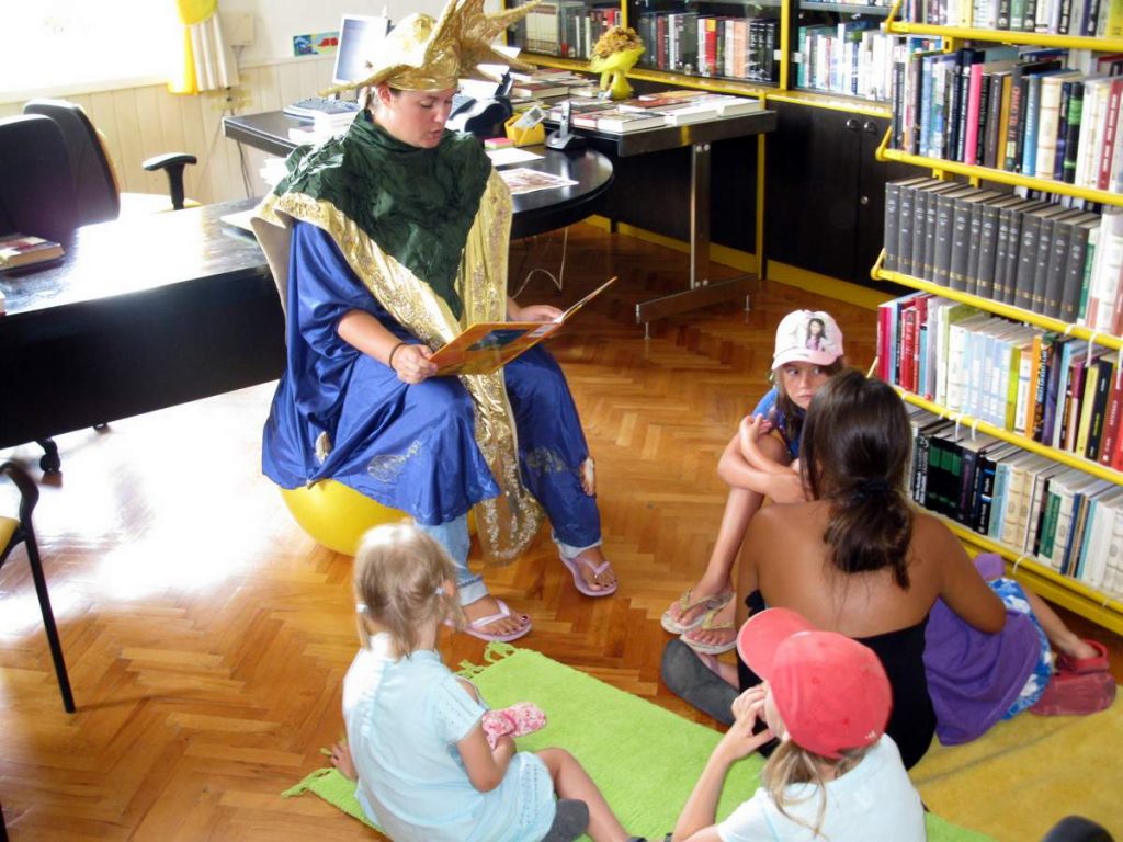 Čitanje priča hrvatskih autora prevedenih na strane jezike. Hotelski animatori dovode u knjižnicu djecu koja borave u hotelima. Knjižnični fundus sadrži literaturu na osam stranih jezika.