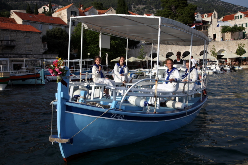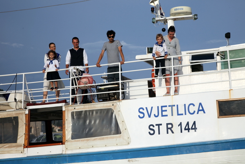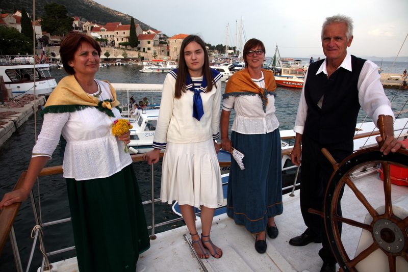 Tonči i Mare Jakšić, pas Lu s leutom „Drevni“ iz 1919. godine; Mario Jakšić, Matijas i Nicol Lovrić, Ana Pina Marinković i Lana Pavišić s brodom „Mare“; Marijo Rončević, Nataša, Zara i Eva Jakšić s brodom „Longo“; Andro i Ivano Jugović s brodom „Mari“; Brane, Domagoj, Franka, Laura i Maro Marinković; Fanica, Pravdan, Antonia i Petar Katić; Joško Cvitanić, Ivan, Matea i Luce Radosnić s gajetom „Sardela“ iz 1880., najstarijom na Jadranu; Vicko Ščepanović, Nikolina i Niko Pavišić, Kate i Mia Martinić, Joško Stančić s kočom „Svjetlica“; Jakov Karninčić s brodom „Diana“; Lea, Frane i Dinko, Marinković, Frane, Ines i Vinko Kraljević, Marijo Marinković, Mate Petrić i Marija Vrsalović s brodom „Frane“; Ivan Marinković; Matko, Zdravka, Tonka i Mariela Koljatić; Branko, Bojana i Maja s brodom „Veli“; Tomo Brešković; Tonči Plenković i Mateo Marinković s brodom „Tomić“; Zlatko, Gabriela i Piera Brizić; Vedran Krunić; Jerko i Piera Restović, Hana Šesnić i Lena Karmelić s brodom „Jere“,