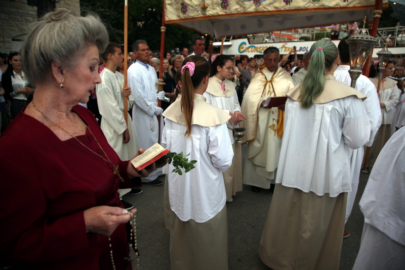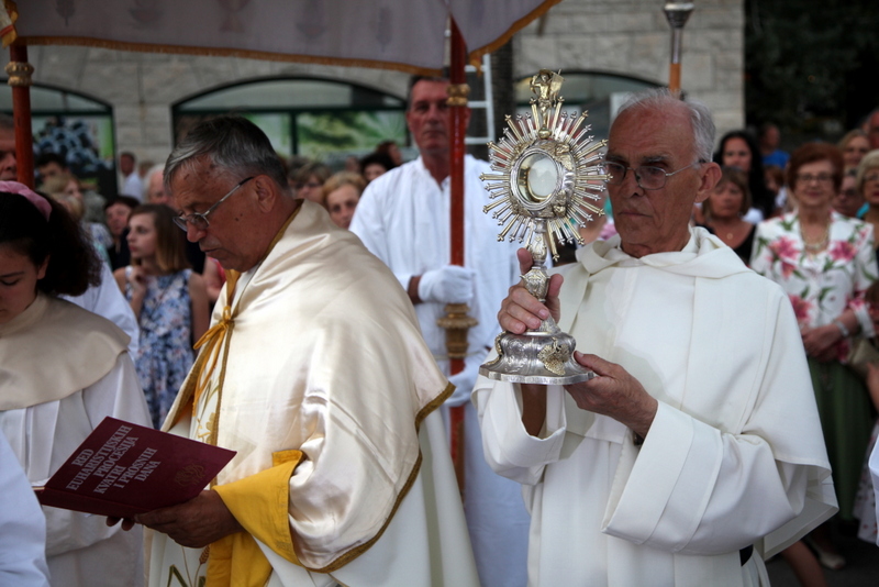 Nekada je procesija, predvođena svećenikom, koji ispod baldahina u monstranci (pokaznici) nosi posvećenu hostiju, išla od župne do samostanske crkve i natrag u pratnji svićarica, a u novije vrijeme se kreće uz Ložu do crkvice sv. Ante i natrag preko rive, sa zaustavljanjem u luci gdje je dočekaju bolski ribari u svojim okićenim brodovima da bi primili Božji blagoslov.